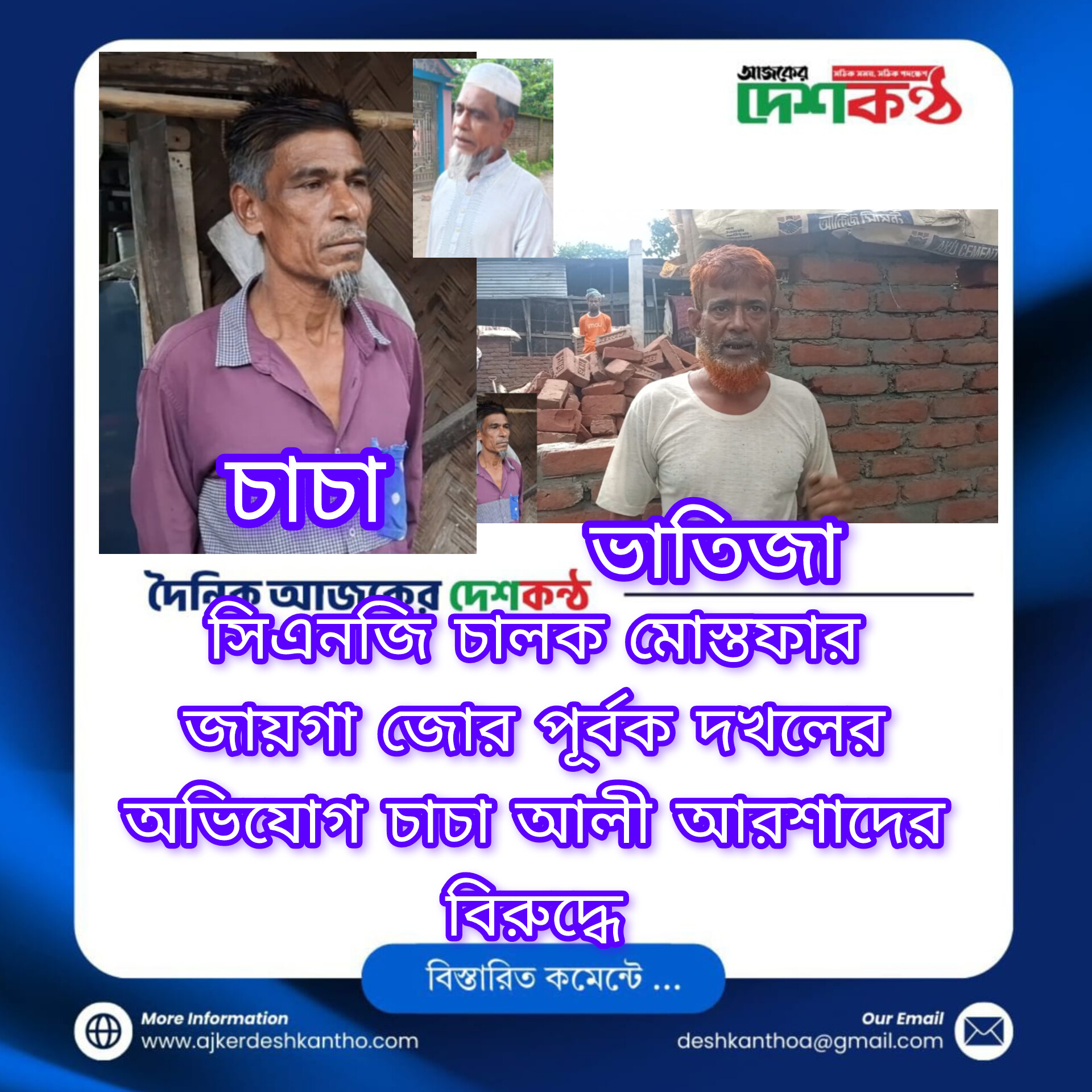ভুক্তভোগী মোস্তফা মজুমদার বলেন-আমার নামে জমির সব বৈধ কাগজপত্র থাকা সত্ত্বেও আমার চাচা আরশাদ জোর করে দালান নির্মাণ করছে। এর আগেও তাদের পুরো পরিবারের ভাড়াটিয়া লোকবল নিয়ে এসে আমার ঘরের পাশে একটি জায়গা জোরপূর্বক দখল করে।আমি প্রশাসনের হস্তক্ষেপ কামনা করছি এবং এর সুস্থ্য বিচার দাবি করছি।
